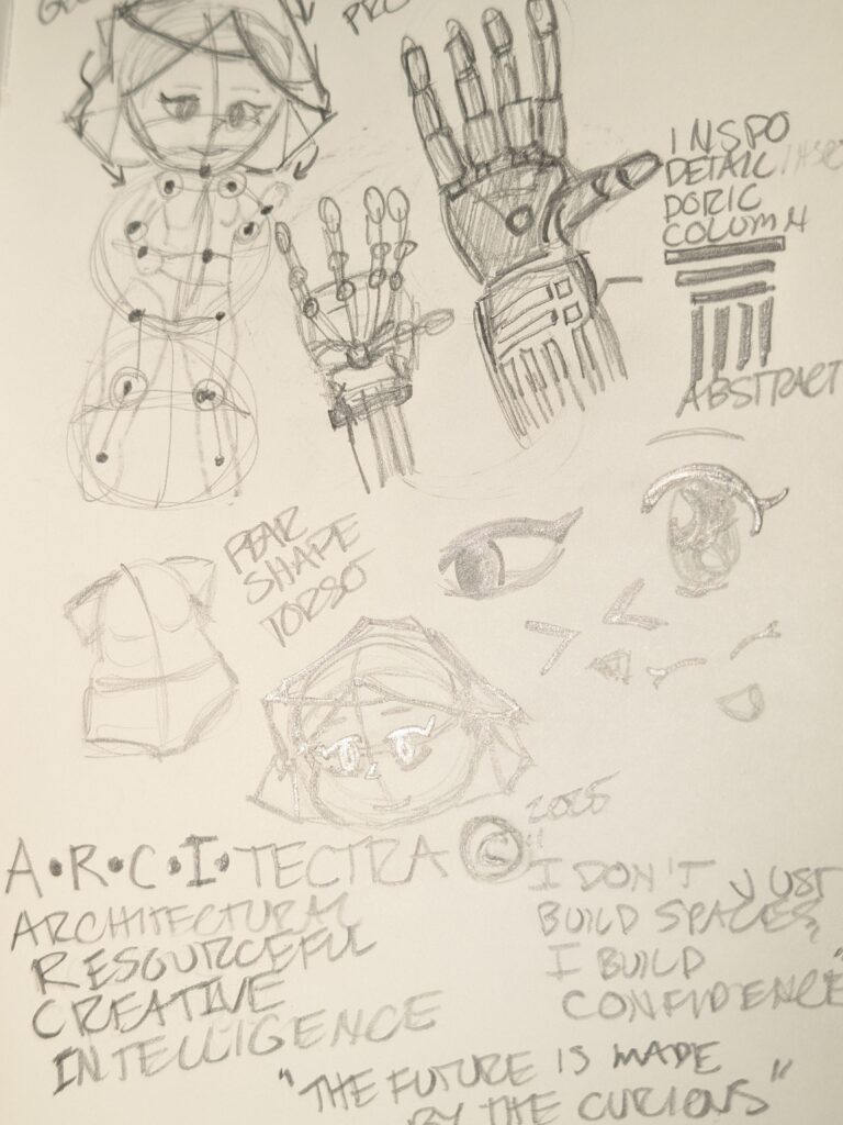 Still in development, A.R.C.I. (short for Architectural Resourceful Creative Intelligence) is more than just a character; she’s a teaching tool, a spark for creative thinking, and a friendly face designed to bridge the gap between STEM and the arts, between architecture and imagination.